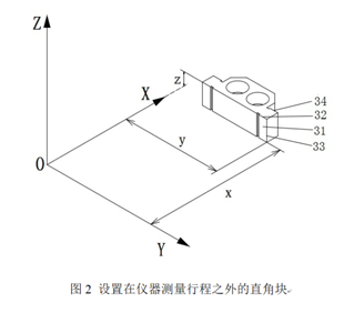 軸正向行程多出的部分,用於實現間接標定。圖2設置在儀器測量行程之外的直角塊。