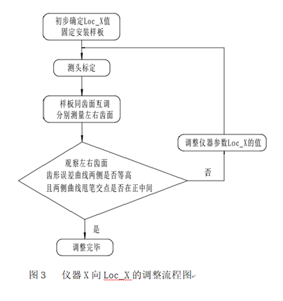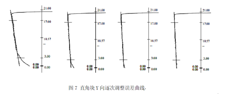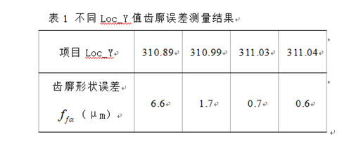 循環以上過程,根據調(diào)整完成的直角塊位置坐標重(chóng)新標(biāo)定後,再次進行測量,調(diào)整,很快就會得到滿足精(jīng)度要求的直角塊在儀器Y向的坐標位置。圖6是儀器向調整流程圖。參(cān)照樣板L12087提供的標(biāo)準齒形誤差曲線(xiàn)報告單,經過四次調整,當Loc_Y=311.04時,滿足(zú)齒(chǐ)形測量誤差要求。如表1所(suǒ)示。