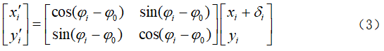 齒輪測量中心為四軸測量係統,其中旋轉軸及各直(zhí)線軸均安裝精密光柵,可以實時讀取整個測量過程中每個采樣點的實時坐標位置,儀器展成坐標係A:{О;φ,X,Y}要通過坐標(biāo)變換轉成靜止直角坐(zuò)標(biāo)係  下齒(chǐ)麵實(shí)際(jì)點坐標,表達式如下: