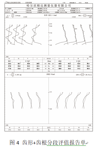 本文提(tí)出方法嚐試改變(biàn)一個思路,對有(yǒu)過渡區測(cè)量要求的情(qíng)況,采取對單側齒麵“齒根+齒廓”一次測量,分段處理的方式,在一張報告單中同(tóng)時反應齒根輪廓及(jí)齒廓誤差情況,該測量方式隻需要將(jiāng)測量的起始點下移超(chāo)過需要反(fǎn)映的滾-剃、滾-磨(mó)工藝結(jié)合位置,正常齒廓測量。結合傳統齒廓測(cè)量(liàng)等(děng)分(fèn)90度,左右(yòu)齒(chǐ)麵(miàn)的(de)測(cè)量方式。更快速、更(gèng)方便、更全麵的反映齒麵測量信息,同(tóng)時,測量所得的齒輪根部輪廓,不存在(zài)測頭(tóu)半徑的影響,直(zhí)接反應的是齒輪工藝結(jié)合部分(fèn)的情(qíng)況,更(gèng)利於齒(chǐ)輪質量的判斷與控製。